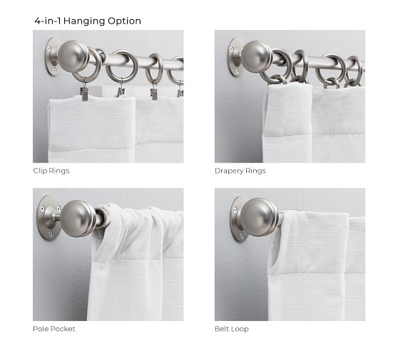 - This panel features our 4-in-1 top treatment via pole pocket, belt loop, clip rings or drapery rings so you can achieve the look you want.