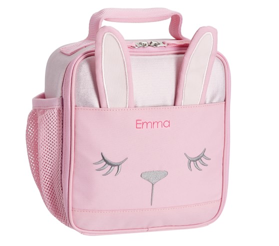 This item is No Longer AvailableEasier to tote than plastic or metal lunch boxes, our reusable lunch box features an adorable pink bunny and is stylishly designed and insulated to keep food fresh. Durable, functional and oh-so-playful, it’s made of water-resistant polyester and comes equipped with plenty of room for all their snacks.