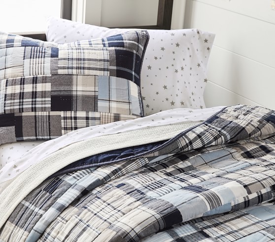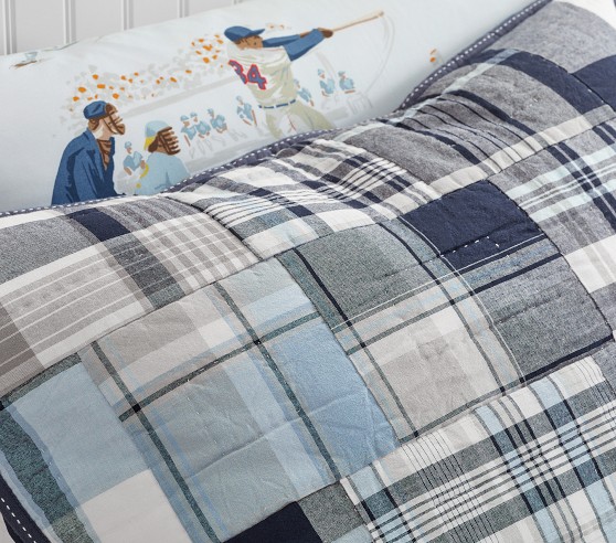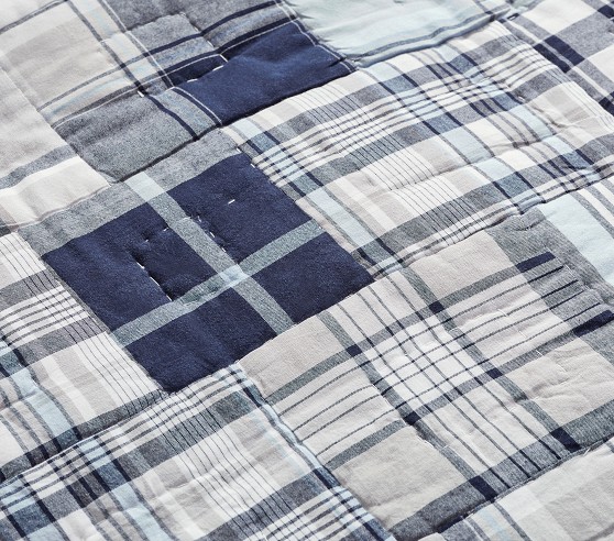 Our madras plaid quilt is made by hand and gives your child's space a preppy and classic look.