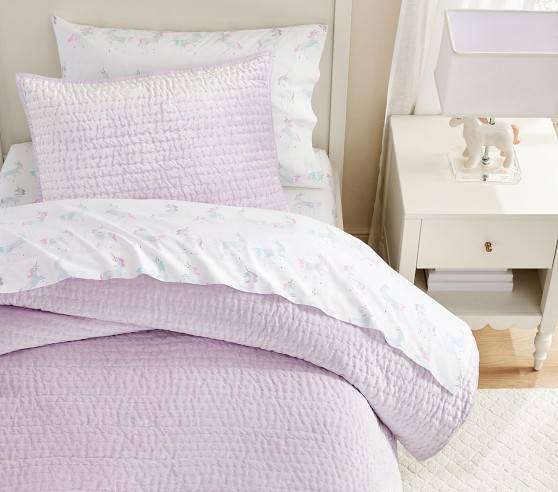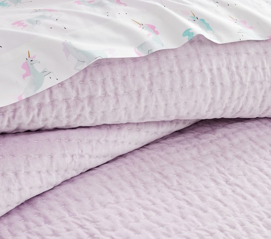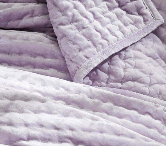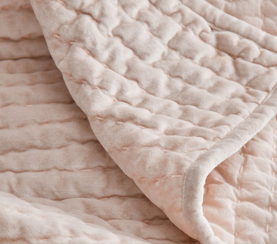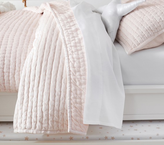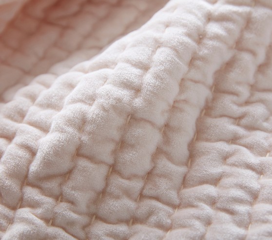 Add a layer of stylish comfort to your little one’s bed with our sumptuous quilt and shams. Expertly pick stitched by hand, the velvet bedding brings rich texture and refinement to a room with its subtle sheen and understated design.