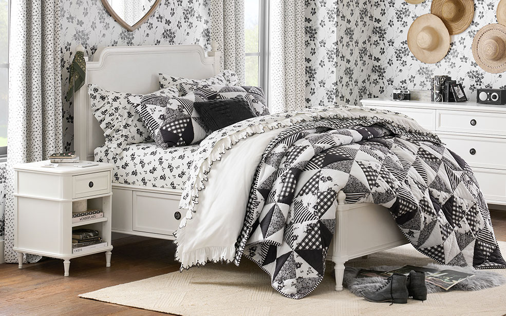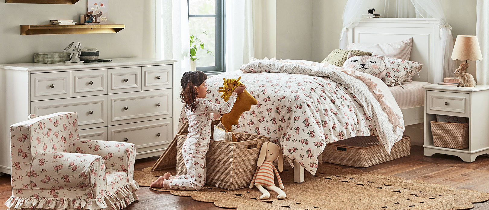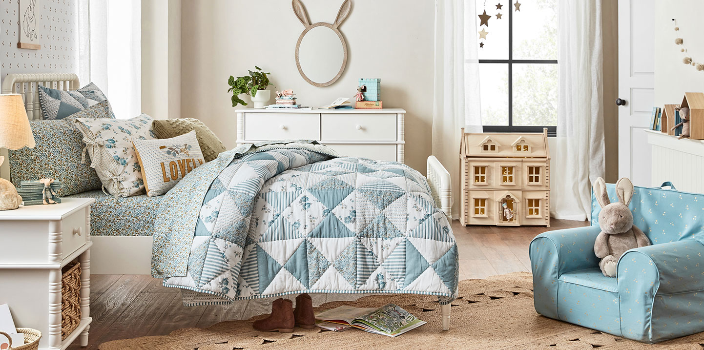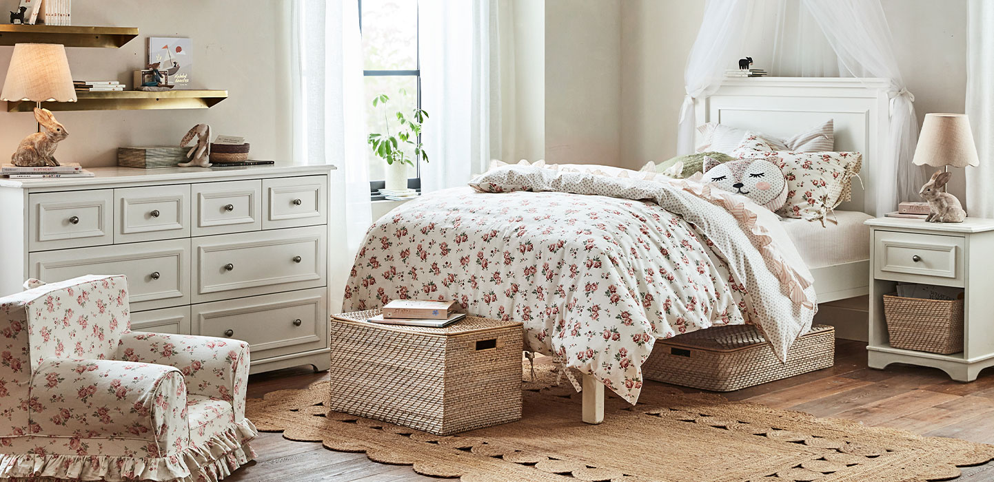 Create a cozy, colorful space with dreamy floral prints, natural textures and sweet finishing touches in