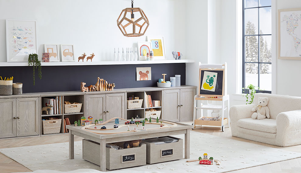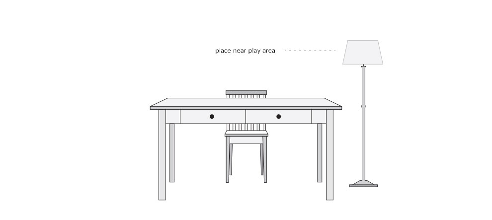They’ll need a floor lamp for imaginary play and artistic discoveries. Overhead hanging lighting