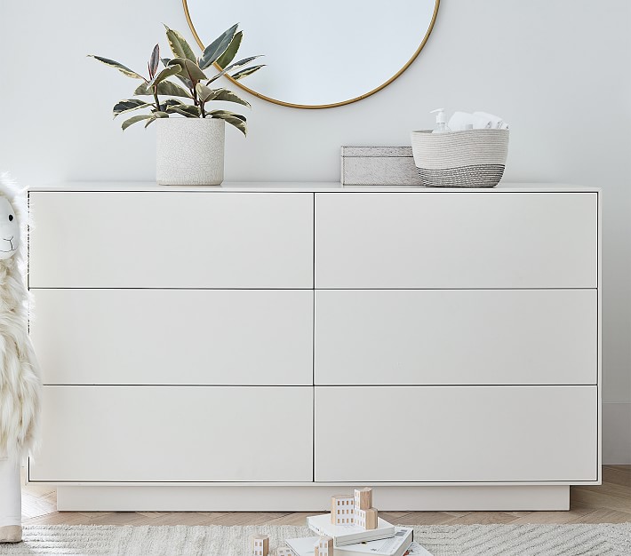 The Emilia Dresser is a perfect addition to a modern, sleek room. In a classic white with a streamlined design, it keeps clothes, toys and more organized.