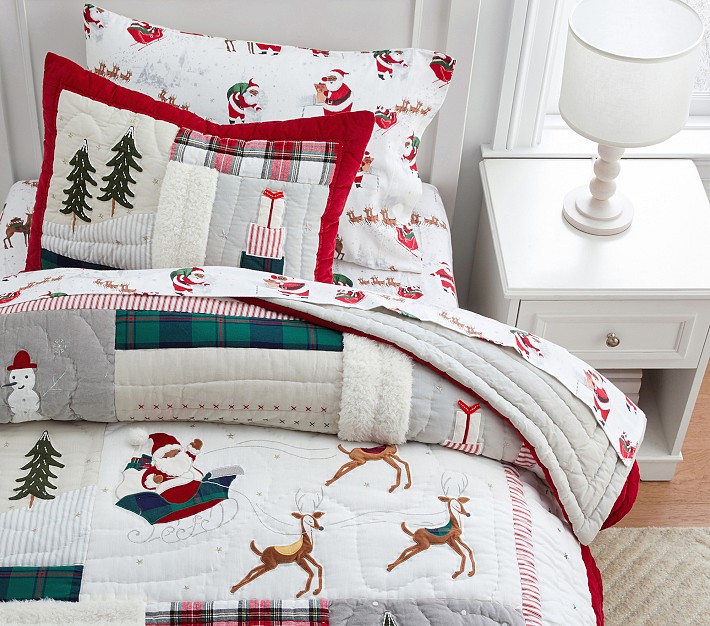 Get their room holiday ready with this merry Heritage Christmas Quilt, featuring wintry Christmas scenes woven from cotton. They’ll go to sleep snug with visions of sugar plums dancing in their heads as they await Santa’s arrival.