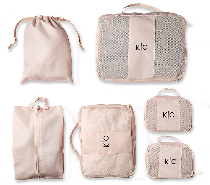 - Monogramming is embroidered. The monogram will be the same across all four rectangle packing cubes. Laundry and shoe bags can not be monogrammed..