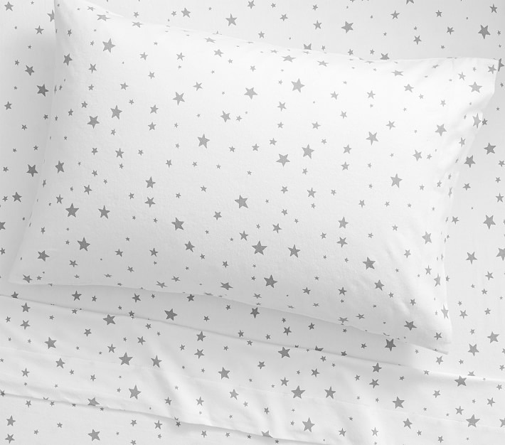 Organic Glow-in-the-Dark Star Flannel Sheet Set, Pillowcase, Standard Pillow Case, Grey No Longer Available