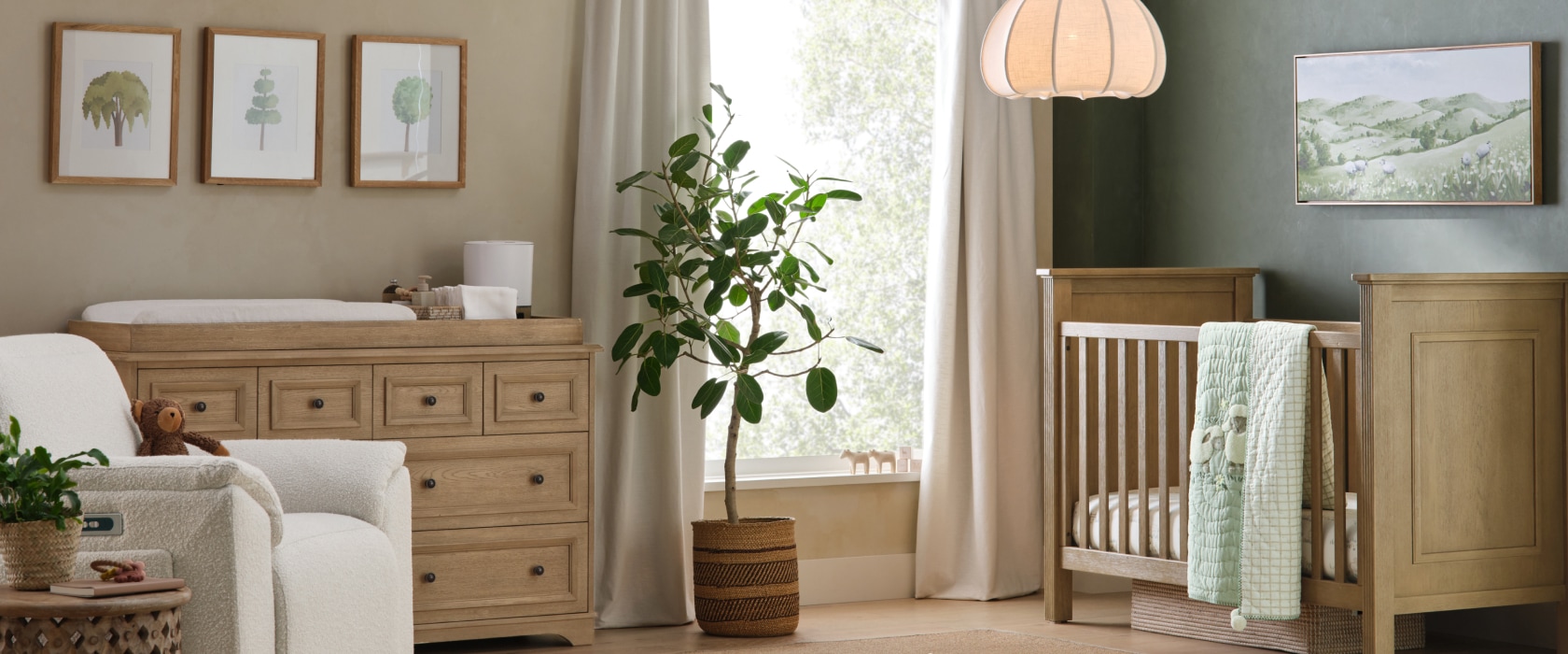 Once you select the nursery curtains, find the accessories and hardware you need. Find curtain rods in several versatile metallic finishes, including brushed gold, nickel and white. When choosing curtain rods, consider the finials, which can define the style of the rod and add a lovely finishing touch.
